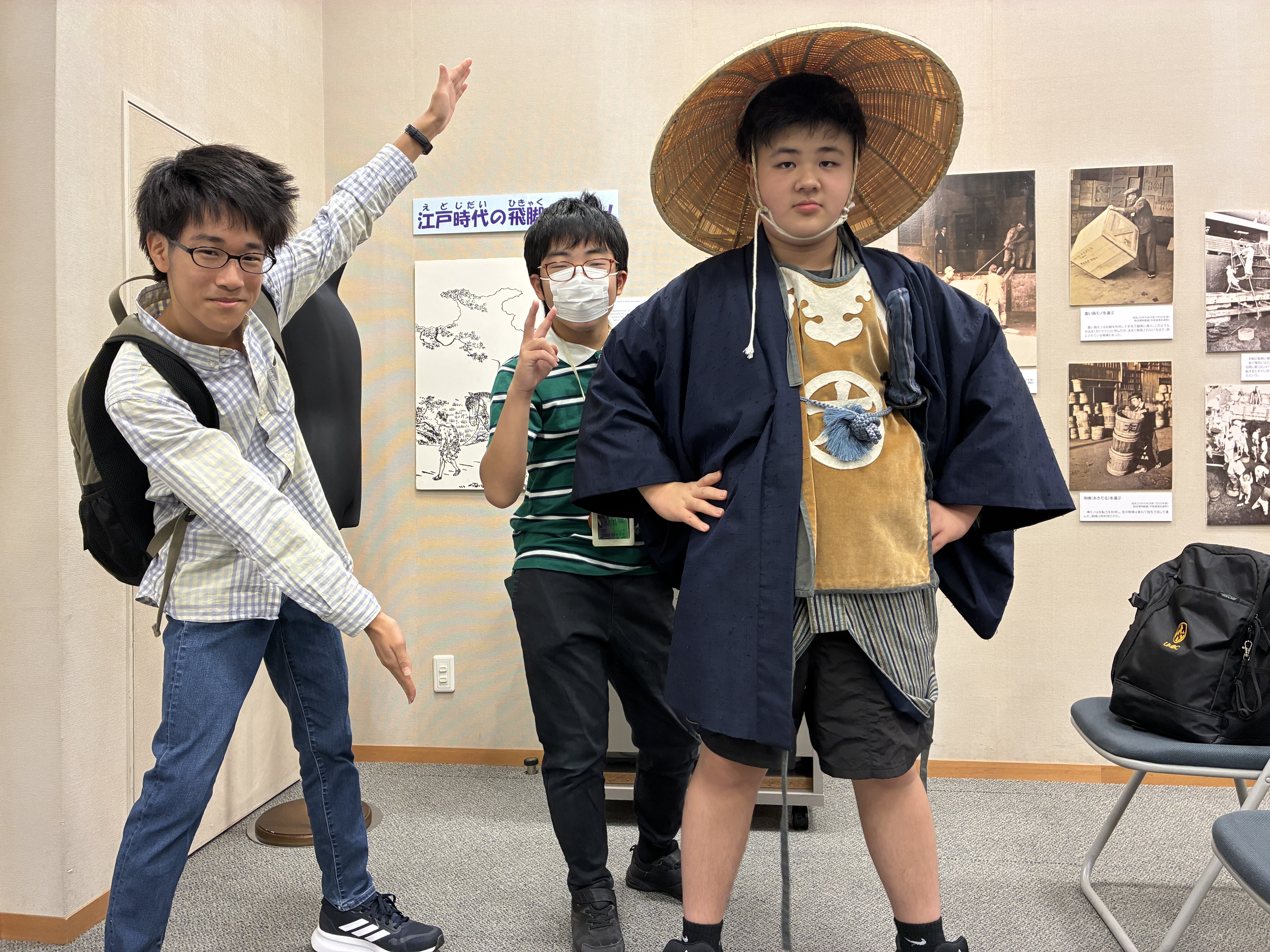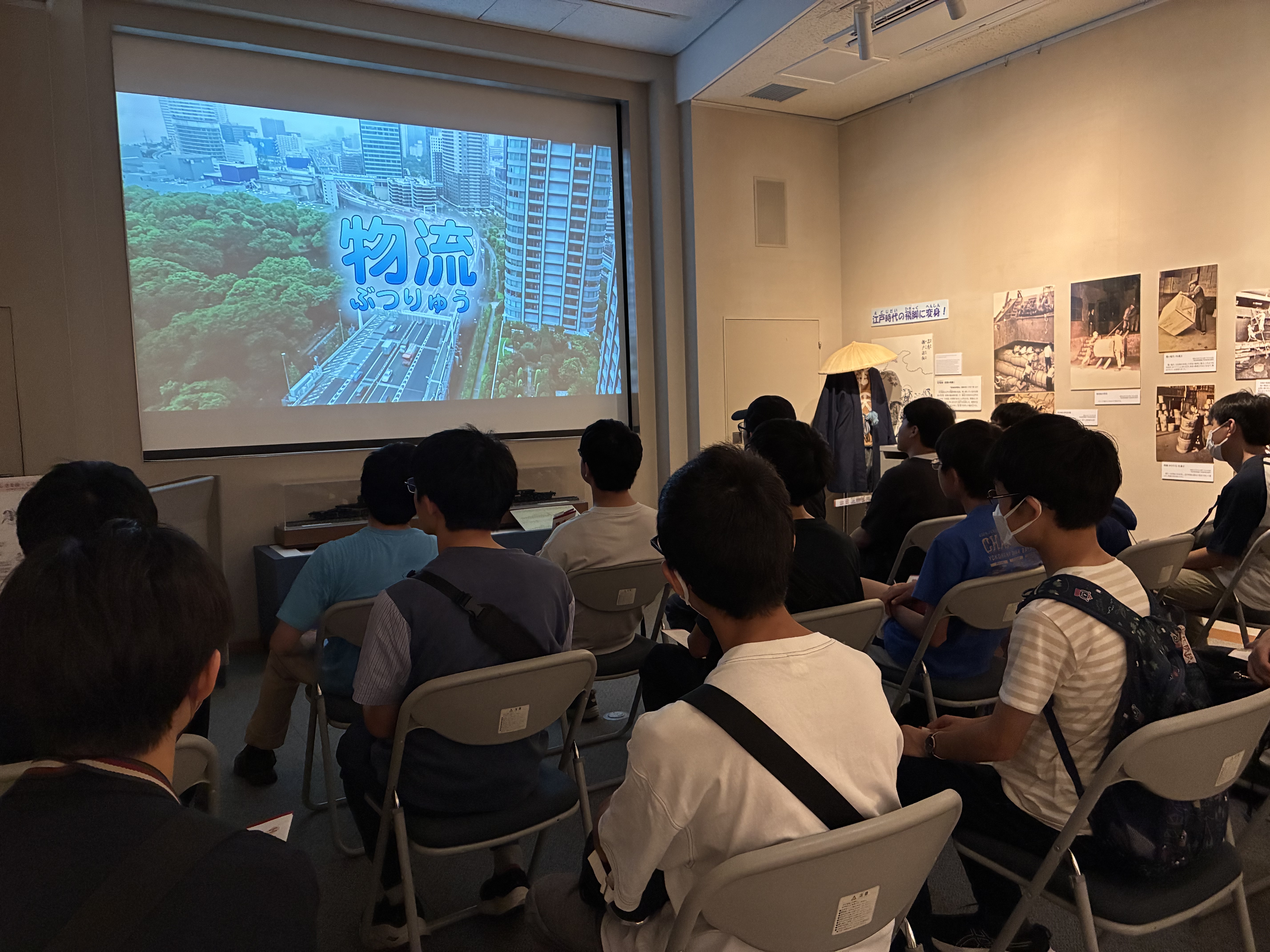 まず訪れたのは、物流博物館です。ここでは、物流の歴史や、現代の物流の方式を見ることができました。また、飛脚や町人の荷物の持ち方を体験することができました。