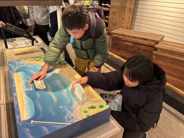 羽田における急激な産業構造の転換を歩きながら体感しました。住宅街に溶け込んだ「過去の物語」に耳を傾けることで、空港だけではない羽田の魅力を生徒たちは発見できたようです。11時ごろから雨も止み、教科書の中だけでは味わえない「リアルな学び」の時間となりました。