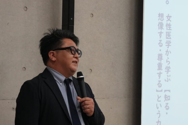 2週目は、宝島社様の「フェムテック・フェムケアプロジェクト」の一環として、綱島女性クリニック院長の粒来拓先生にご来校いただき、女性医学の観点から「女性の健康」についてご講演いただきました。