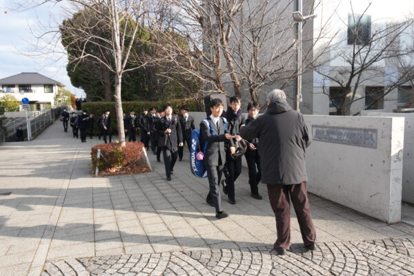 2月14日の聖バレンタインデーにちなんで、鳥越校長が生徒にチョコレートをプレゼントしました。