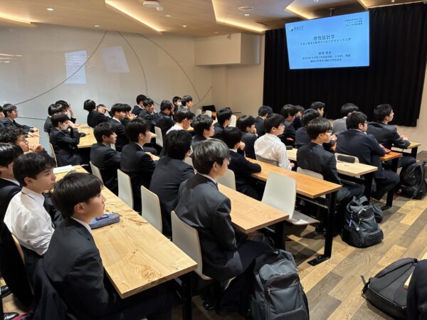 大学の先生からは、人間の認知に関わる感覚や感性について文系・理系双方からのアプローチについて講義をしていただき、興味深い内容に生徒も目を輝かせていました。