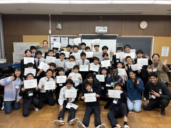 3月30日から3日間、外国人留学生を招き、本校にてEnglish Campを実施しました。英語でのコミュニケーション力の向上を目的に、中学1年生・2年生あわせて55名が、BasicコースとAdvancedコースに分かれて参加しました。