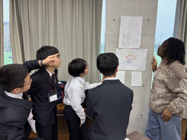 初日は表情の硬かったBasicコースの生徒たちも、さまざまなアイスブレイク活動や留学生との交流を通して、徐々に緊張がほぐれていきました。他のグループの発表に歓声が上がるなど、次第に活気のある雰囲気へと変化していきました。2日目には、校内の「eco-friendlyなもの」を探すアクティビティを実施しました。生徒たちが留学生に対して一生懸命に説明する姿が印象的でした。