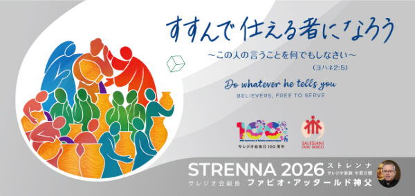 今年のストレンナ「すすんで仕える者になろう」ですが、「仕える」という言葉の印象は、ちょっと違和感を感じるかもしれませんね。「自分、別に奴隷や奉公人じゃないし」そもそも誰に仕えるの?と「???」が飛び交うはず。なんか今年の年間目標は難しそうですね。