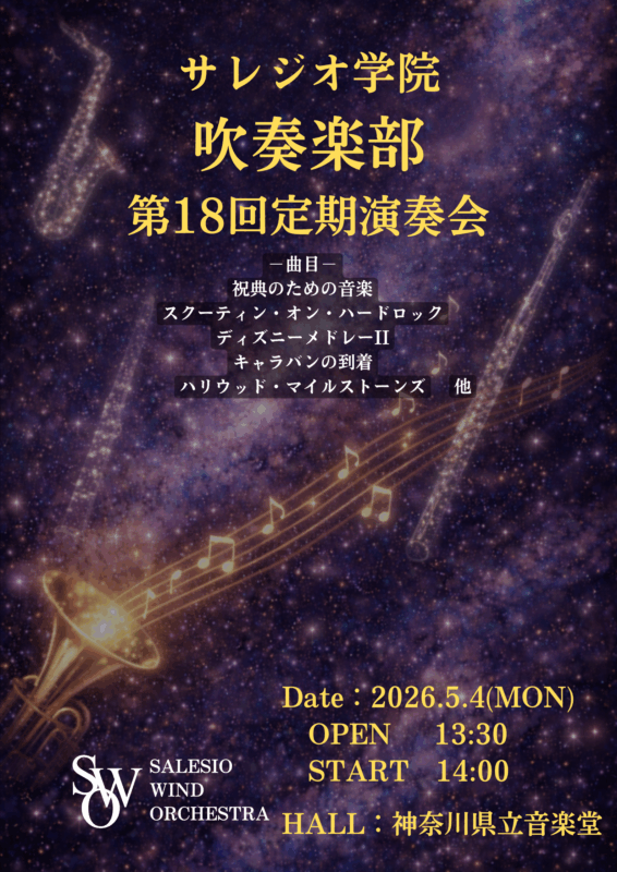 吹奏楽部「定期演奏会」5/4(祝月)のお知らせ